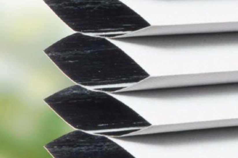Edle Stoffstruktur mit seidiger Anmutung und weißer Rückseite. Schirmt das Tageslicht nach Wunsch ganz ab. Reduzierte Wärmeaufnahme am Fenster.