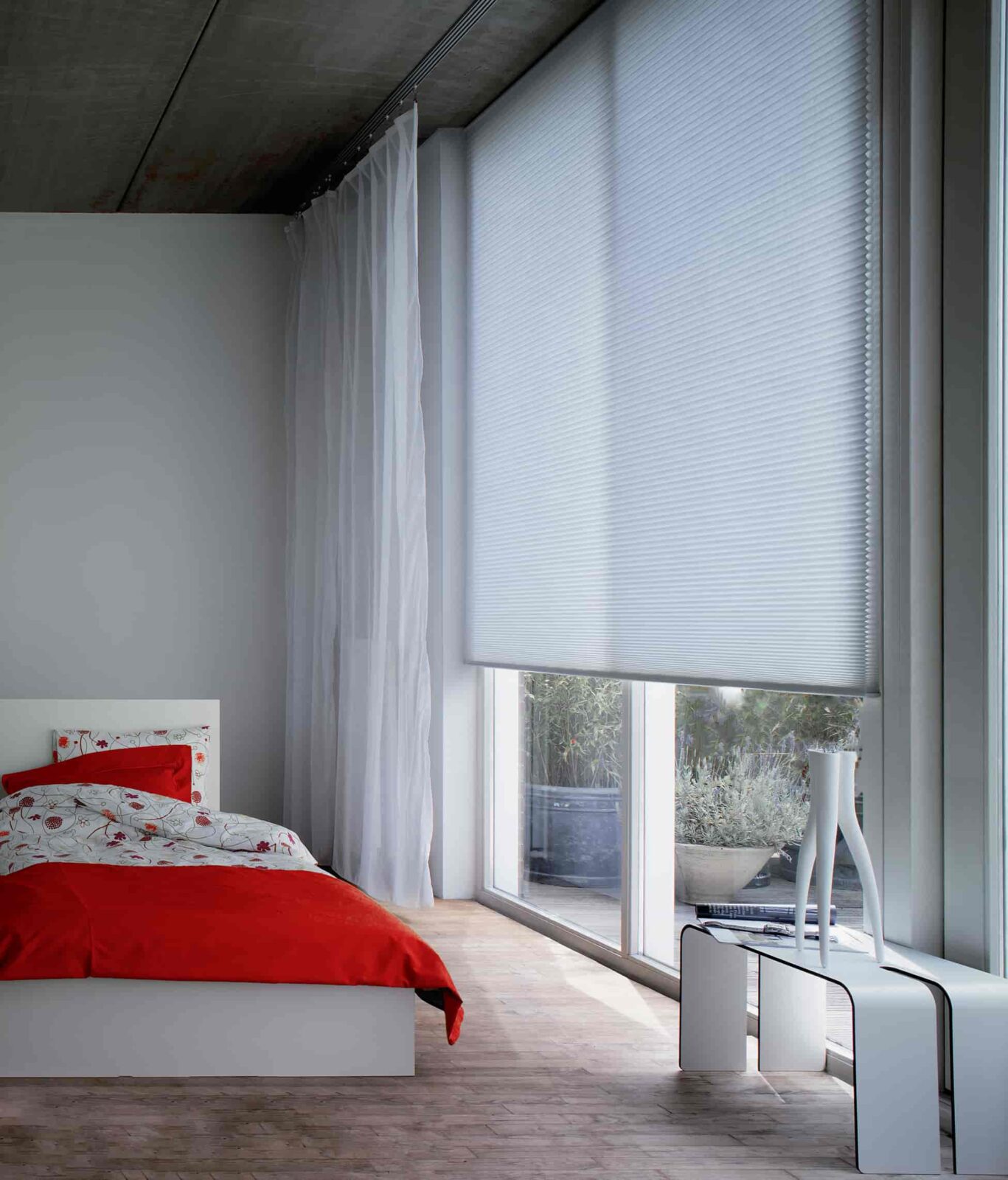 Für nahezu lichtfreie Bedingungen sorgen verdunkelnde Plissee Stoffe. Verdunkelungsrollos mit diesen verdunkelnden Stoffen sind ideal für Konferenz- oder Arbeitsräume, in denen mit Bildschirmen oder Beamerprojektionen gearbeitet wird. Aber auch für eine erholsame Nachtruhe in Ihrem Schlafzimmer und angenehm dunkle Verhältnisse für den Mittagsschlaf im Kinderzimmer sind Plissees als Verdunklungsrollos perfekt geeignet. Der verdunkelnde Effekt kann durch die wabenartig aufgebauten Stoffe der Duette® Wabenplissees noch verstärkt werden: Bei diesen Wabenplissees, die aus zwei Stoffbahnen bestehen, werden die Spannschnüre innen geführt, wodurch durch die Lochstanzungen kein Licht fallen kann. So bleibt nicht nur die Sonne draußen – auch Mondlicht oder der Schein der grellen Straßenlaterne.