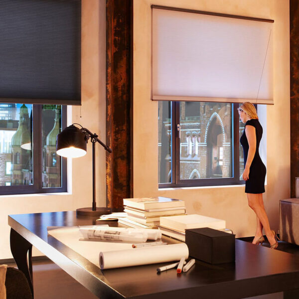 - Plissees am Arbeitsplatz sorgen für eine klare und sachliche Atmosphäre, und sind gleichzeitig eine leicht und unbeschwert wirkende Fensterdekoration.