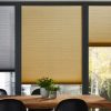 Verspannte Anlage für rechteckige Senkrechtfenster, Türen und Dreh-/Kippfenste mit zwei unterschiedlich transparenten Stoffen, z.B. kann mit einem Verdunklungsstoff nachts der Raum abgedunkelt werden, und mit dem anderen auf dem System befindlichen Stoff, z.B. Sonnenschutzstoff, der Raum tagsüber gegen Hitze geschützt werden. Das Modell ist mit zwei frei vor dem Fenster frei positionierbaren Behängen ausgestattet. Der Stoff ist an der Oberschiene befestigt, je nach Bedarf wird der eine oder andere Behang nach unten gezogen. Dieses Modell wird unten mit je 2 kleinen Spannfüssen befestigt. Die Verspannung sorgt auch dafür, das das Plissee bei gekipptem Fenster weiterhin am Glas anliegt.